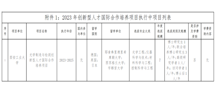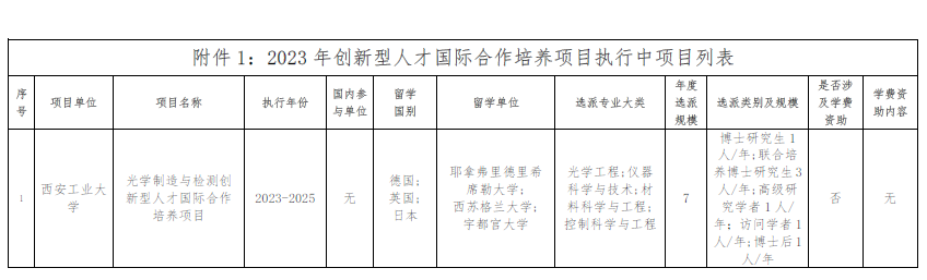 一、2023年执行中项目列表请见附件1。请相关部门严格按照国家留学网《2023年创新型人才国际合作培养项目综 合专栏》和本通知要求,扎实做好2023年第一批人员选拔、公 示和推荐工作。具体要求如下:
