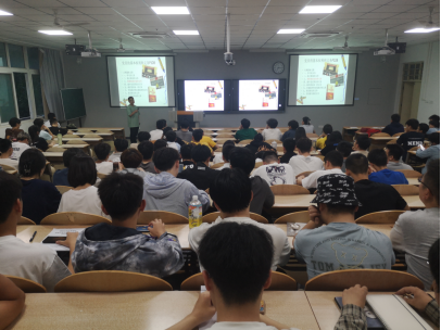 第66期入党积极分子培训班第二讲“入党应具备哪些条件”于教2-203顺利开讲,学院研究生辅导员邵江锋为130余名党课学员进行授课。