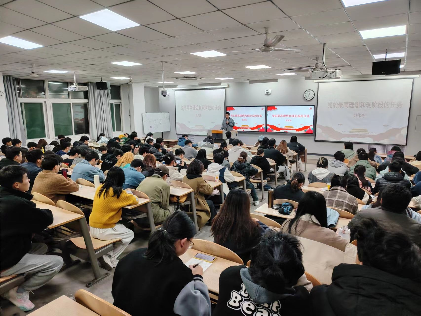 赵伟奇老师从党的最高理想和最终目标、党在社会主义初级阶段的基本路线、全面建成小康社会等方面进行了讲解。他指出,党的最高理想和最终目标是实现共产主义,指出共产主义社会是人类历史最美好的社会制度,社会主义必将代替资本主义,最后必然发展为共产主义;他还讲到,党的现阶段的基本任务是建设中国特色社会主义,社会主义初级阶段是不可逾越的历史阶段。