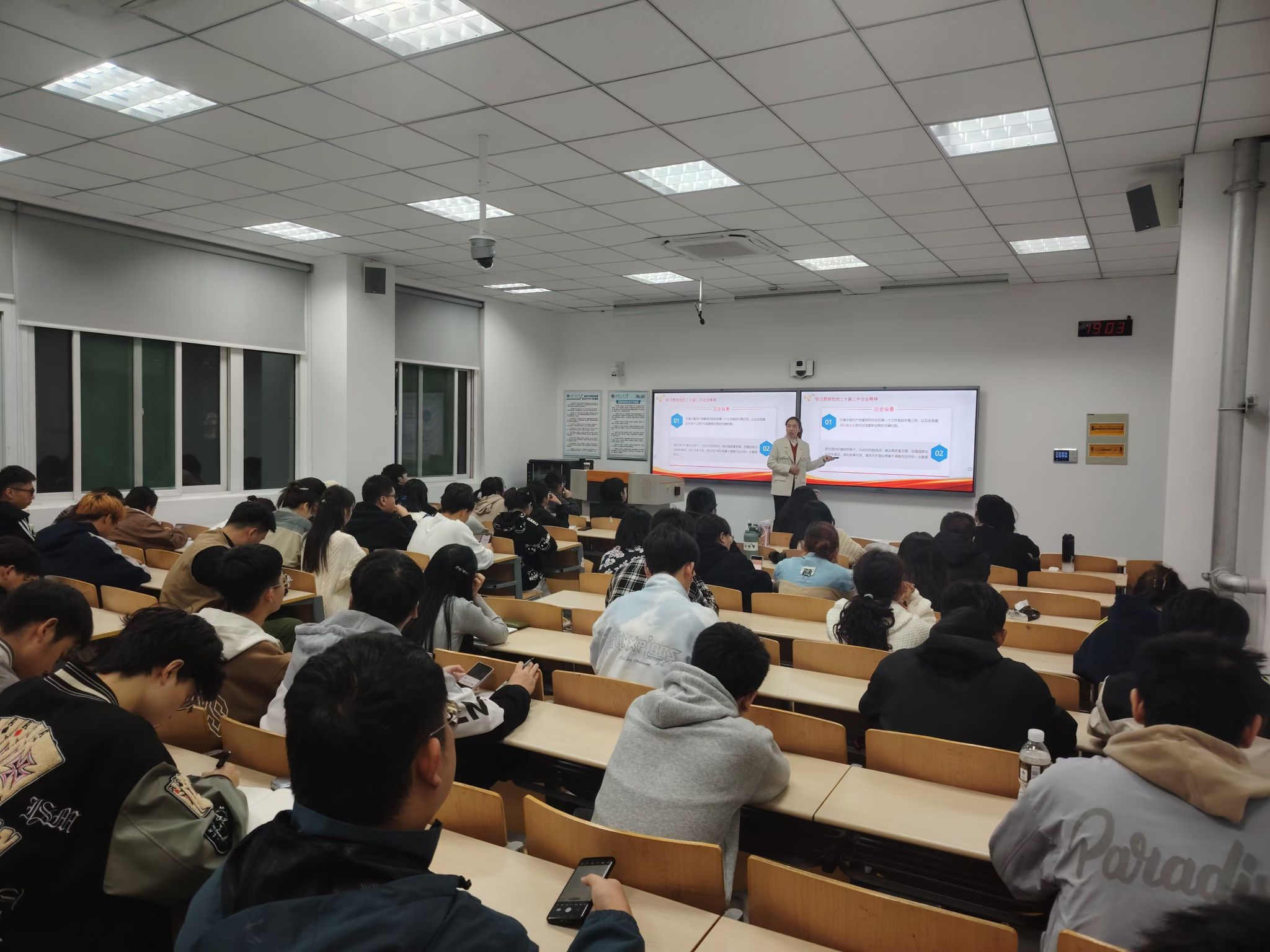 陈慧英以学习贯彻党的二十届三中全会精神为中国式现代化挺膺担当”为主题进行讲授。她介绍了党的二十届三中全会的召开背景和重大意义,进而带领大家进行全面深入学习让同学们要深刻领会和把握进一步全面深化改革的主题重大原则、重大举措、根本保证深入浅出地分析了全会精神的核心要义,使学生们对全会精神有了更加全面和深入的理解。她希望同学们能够贯彻落实党的二十届三中全会精神,坚定信心决心,敢于担当作为,积极投身改革实践。