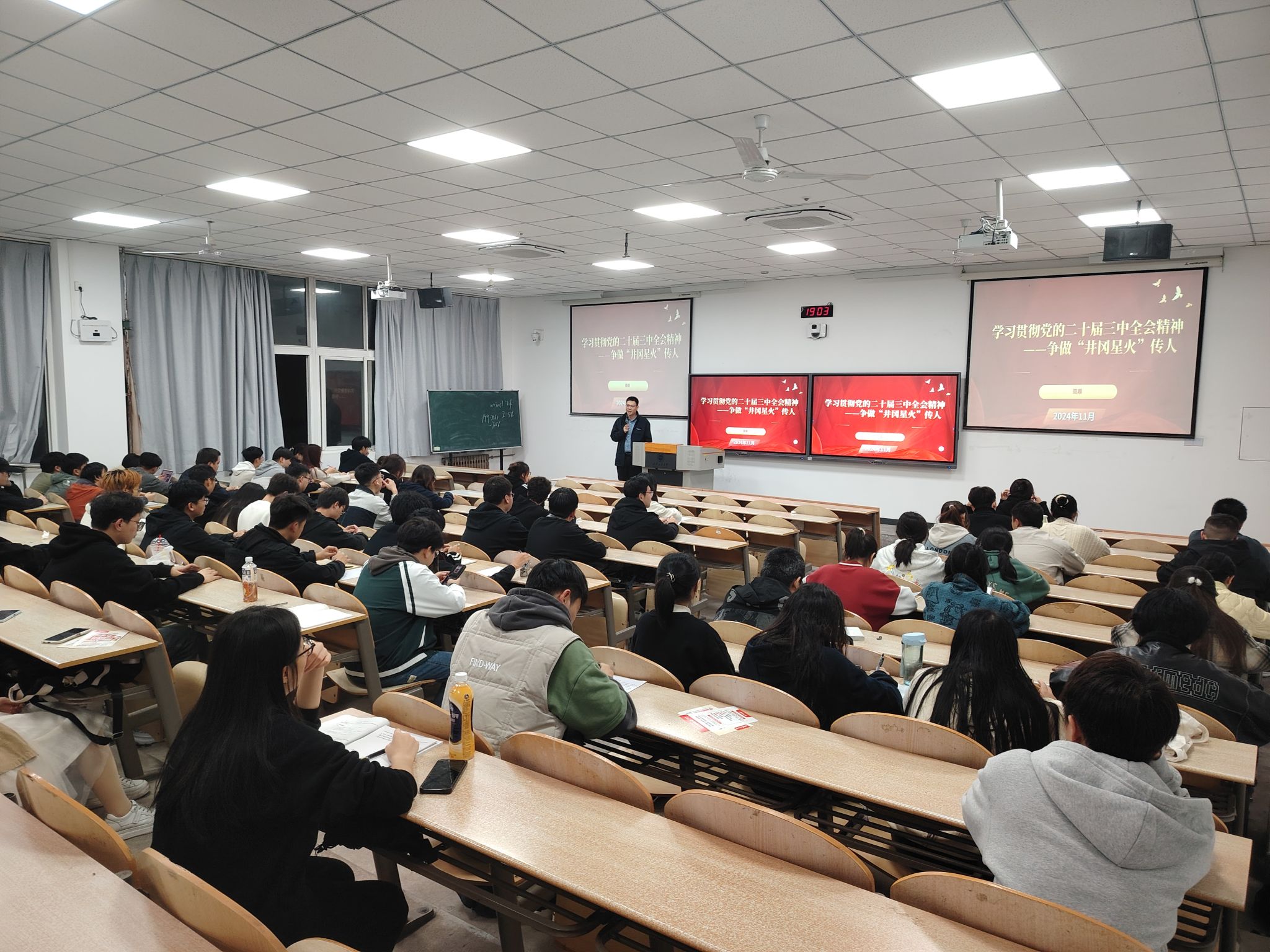 周顺以“学习贯彻党的二十届三中全会精神——争做‘井岗星火’传人”为主题进行讲授。他以中国共产党人的精神谱系概述井冈山精神井冈山精神与当代青年为主要内容进行讲解并播放相关视频。他为同学们讲述了井冈山革命根据地的建立、曲折发展、后期斗争以及井冈山精神的丰富内涵等内容,向同学们介绍了井冈山这个伟大的红色革命根据地,让大家更好的从中了解党的艰辛发展历程。他从大学生要坚定崇高革命信念、要有无私奉献和艰苦奋斗精神、要有创新精神、要有诚信精神等方面对入党积极分子提出了殷切希望。