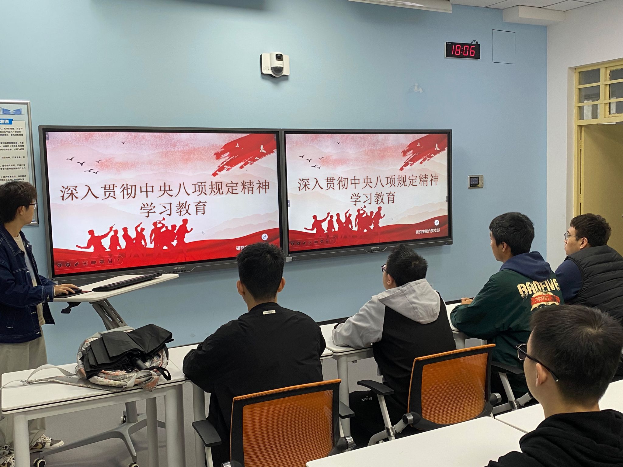 研究生第六党支部于教3-105召开深入贯彻中央八项规定精神学习教育部署会,会议由支部书记付宇龙主持,支部全体党员参加会议。
