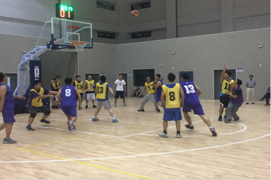此次比赛采取小组赛单方循环赛制,小组第一、第二晋级。比赛伊始,队员迅速投入比赛,个个雄姿英发,你争我抢,同时与队友默契配合,用心组织进攻。虽然队员间的实力存在差距,但赛场上每一个队员都以饱满的热情参与。在赛场外,拉拉队也毫不松懈,他们奋力为队员们呐喊助威,热烈的欢呼声此起彼伏,感染着场上的每个队员。我院男篮在小组赛中与人文马克思主义学院联队以17:3 1的劣势输球,但接下来与计算机学院的比赛中以41:10 的大比分胜出小组出线进入8强。8强赛中与上届冠军后勤集团对阵,队员们积极应战,全力拼搏,最终以19:25的劣势不敌后勤队遗憾止步8强。