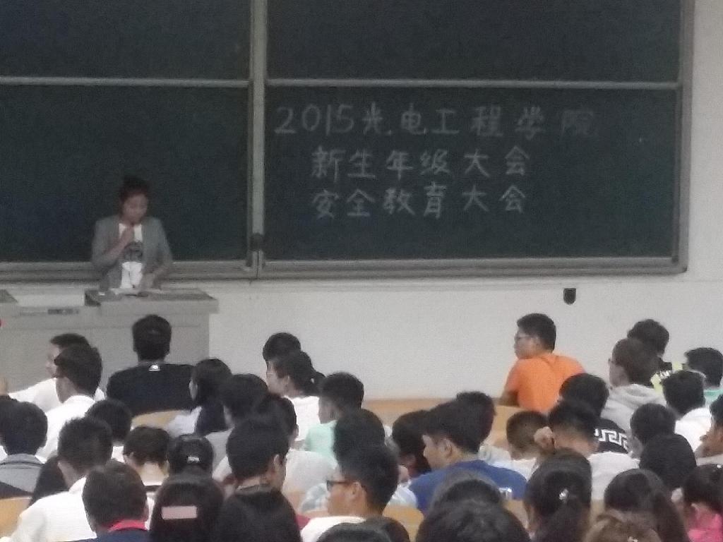 在教1-101和教1-205分别召开2015级新生班安稳年级大会,对15级学生进行了校规校纪及安全教育。15级524名学生全部参加了会议,2015级辅导员梁伟樯、刘地格主持会议。