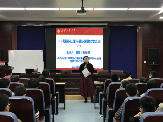 于2018年11月1日晚19:00在工6-402会议室举办了2018级心理委员及宿舍心理信息员讲座——朋辈心理帮扶能力培训。