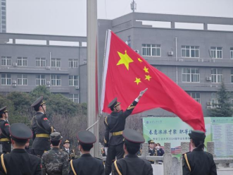 7时整,升国旗仪式正式开始。在清晨第一束阳光的映照下,英姿飒爽的国旗护卫队迈着铿锵有力的步伐护送国旗庄严地走向升旗台,在激昂的《义勇军进行曲》中,旗手振臂一挥将国旗展向天空,鲜艳的五星红旗冉冉升起在蔚蓝天空的映衬下更加鲜艳夺目,全体师生目光紧紧追随着国旗,心中充满了敬意与自豪。