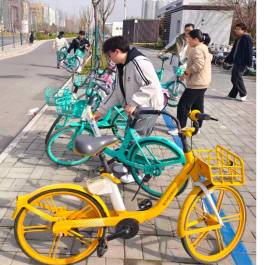 活动当天,志愿者们在研究生辅导员王亚茹的带领下前往学校附近共享单车停靠点。面对杂乱堆放、倒地横放的共享单车,大家分工协作,经过集中整理,使原本拥挤混乱的停靠点变得井然有序,出行通道畅通无阻;在规范停放的同时,志愿者们还化身文明引导员,对前来取车、停车的市民进行讲解规范停放的便利与意义;不少市民点赞,表示会自觉遵守停放规则,共同维护良好的出行环境。短暂的快闪宣传环节中,志愿者们秉持 规范停放让城市更有温度思想,用青春活力的姿态呼吁市民文明骑行,吸引了过往行人的驻足关注与积极响应。