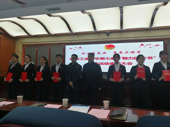 第七届“魅力团支书”评选活动表彰大会在我校学术报告厅举行,党委学生工作部副部长姬洪波,团委副书记翟超,学生处管理科科长靳永军,以及各学院团委书记、学生代表参加了本次大会。