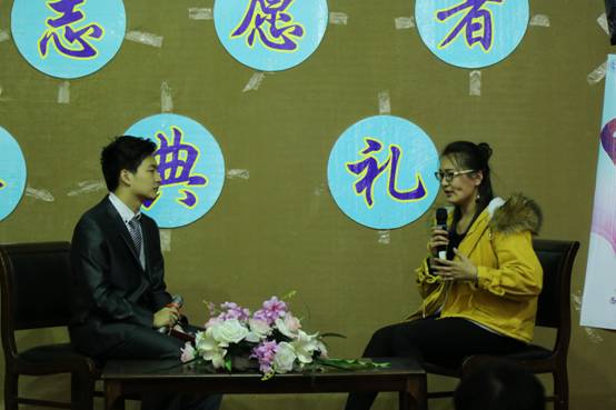 首先,全场观众一起观看了《志愿之声》志愿活动短片,回顾了志愿者们认真开展志愿活动的精彩瞬间。紧接着,现场采访暨颁奖仪式开始,白杏同学第一个上场,她结合自身经历向同学们分享了自己参加志愿活动的感想,介绍了环保、敬老、关爱儿童、关注艾滋等志愿活动,她呼吁更多的志愿者能用爱心和实际行动去践行志愿者精神。张俪凡和季雅楠同学,也向同学们展示了作为一名志愿者应该具备的乐观和奉献精神,他们从志愿活动让生活变得更加美好角度,讲述了对志愿活动的理解。