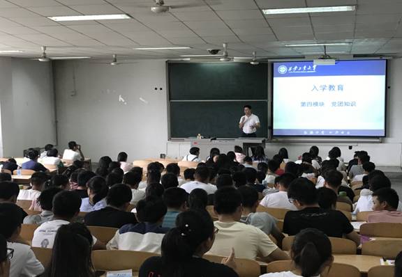 的情况和学科发展状况,让每位新生尽快熟悉和了解学院发展的动态;王彬斐老师带领大家认真学习学籍管理的相关文件,让新生了解到课程考核、考风考纪、学籍处理、毕业和学位授予的具体规定;马睿老师从大学生行为准则、人际交往引导规范、奖学金实施办法和纪律处分条例四个方面讲解了我校大学生教育管理方面的相关规定;兰珺喆老师详细介绍了我校对贫困生资助的政策和助学金认定工作流程;李睿老师介绍了学校、学院团学的相关情况和入党程序;刘地格、朱先彬老师从学校概况、校风校训与办学特色出发,让新生了解学校历史,激发学生的爱校之情,以目标教育理论为依托,让大家尽快找到适应大学的学习方法;陈慧英老师向大家介绍了心理健康方面的知识,让每位新生能够科学的应对入学后产生的心理不适;雷浩然老师通过多个生动案例,从人身安全、意外伤害、财产安全、公寓管理、疾病预防等方面对新生进行了安全教育。