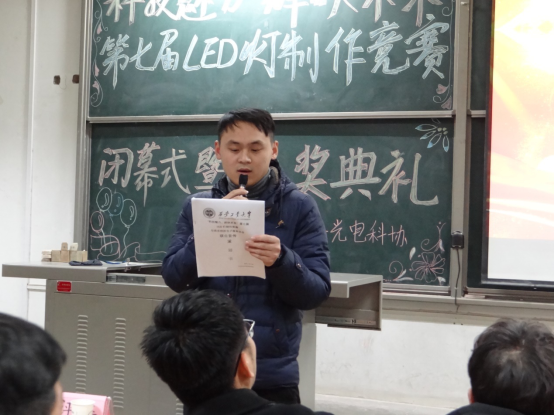 团委主办,科协承办的第七届“科技辉映,辉映未来”LED灯制作竞赛颁奖典礼暨闭幕式在教1—201成功举办。出席本次闭幕式的有调教合集