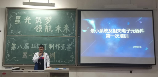 科协分别在教1-401,402,404举行第八届LED灯制作竞赛第一次培训。此次培训竞赛部部长杨曦,信息部部长赵睿,信息部副部长张一明讲解,科协全体干事及全体参赛队员参加了此次培训。