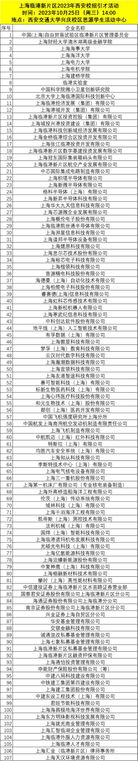 上海临港新片区2023年西安校招引才活动(2023年10月25日)