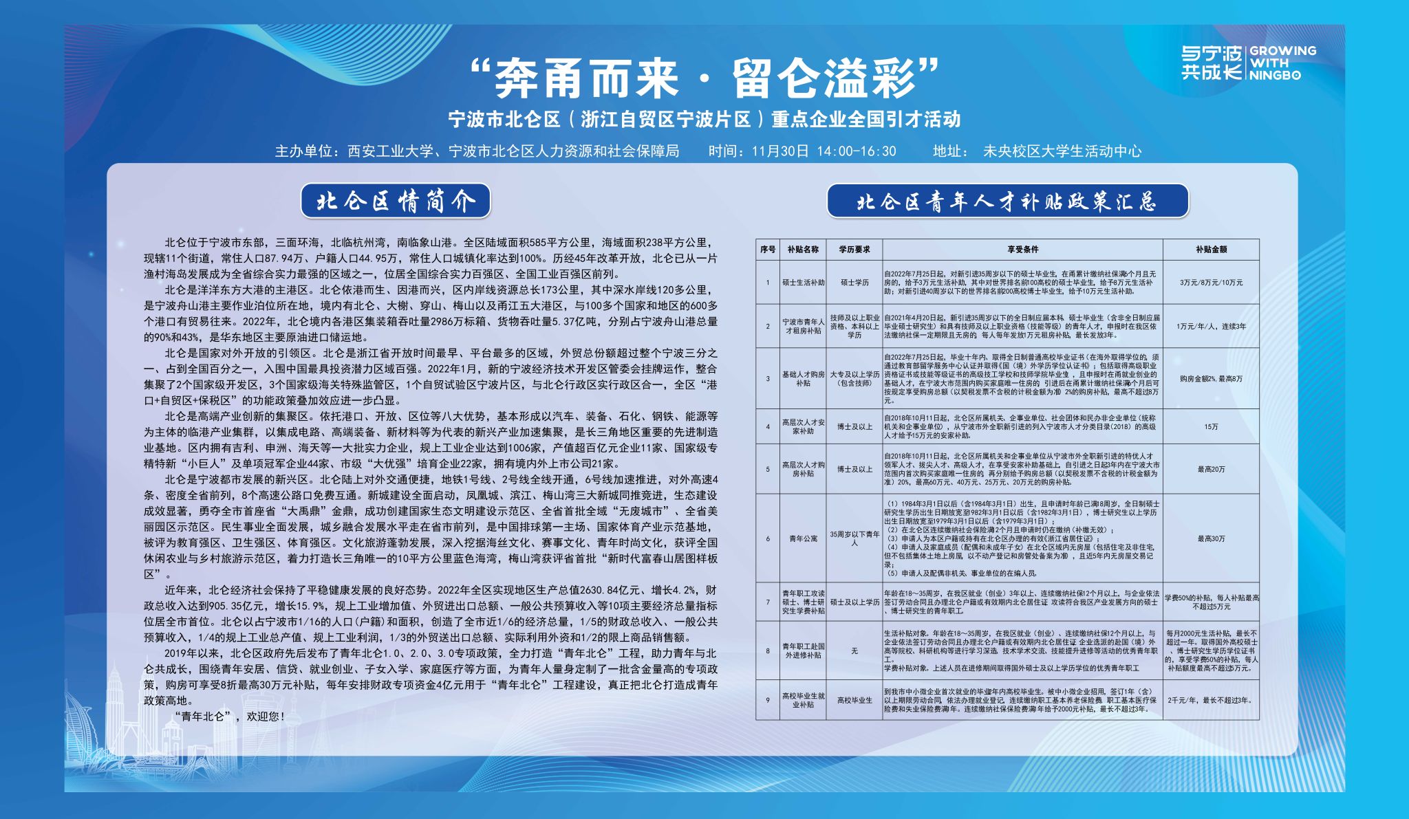 宁波北仑区组团招聘会(11月30日下午14:00-16:30,大学生活动中心一层)