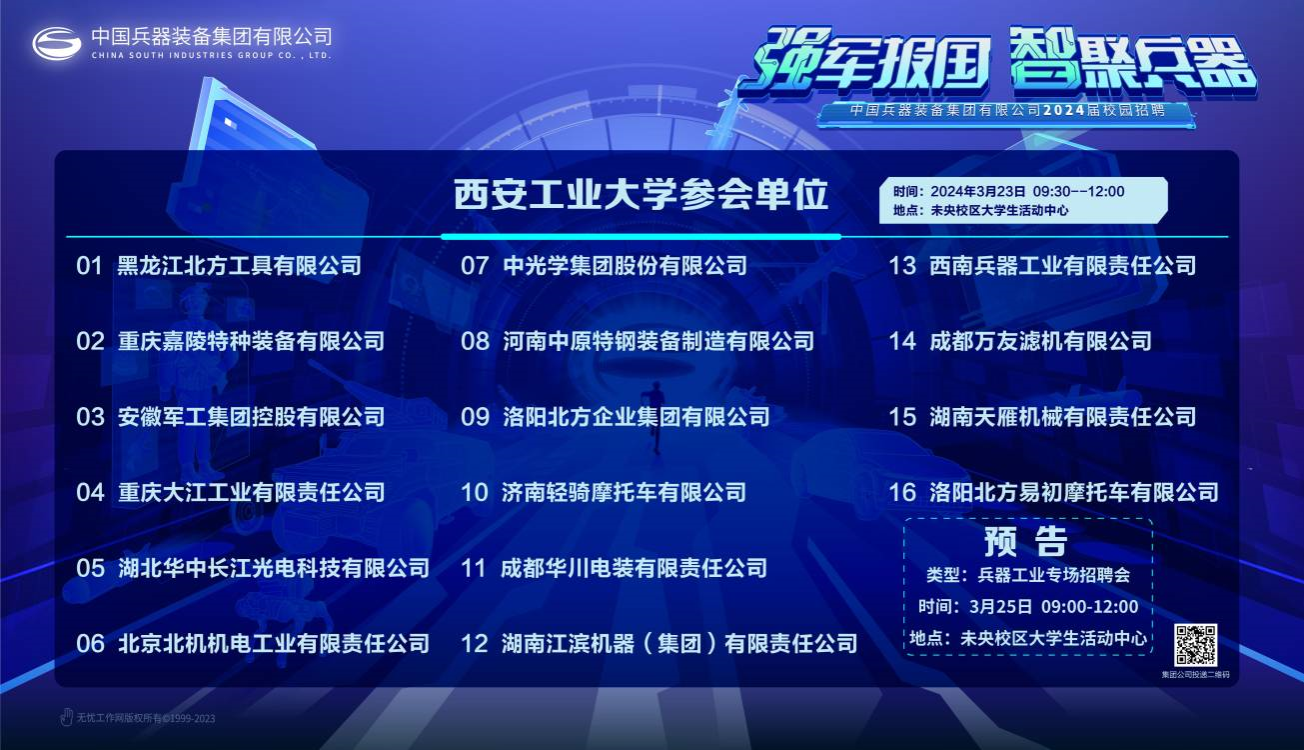 中国兵器装备集团有限公司(3月23日9:30-12:00未央校区大学生活动中心)