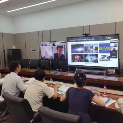 高明院长、周顺书记、潘永强副院长、教师代表刘蓉以及国际处张冬敏副处长和郑瑞娟老师。耶拿大学参会人员有阿贝光子学中心(ACP)的首席执行官Christian Helgert博士、主管硕士研究生培养的Dorit Schmidt主任、主管博士研究生培养的Anna Späthe主任以及大学北京办事处联络官Yi Zheng博士等。会议由调教合集
