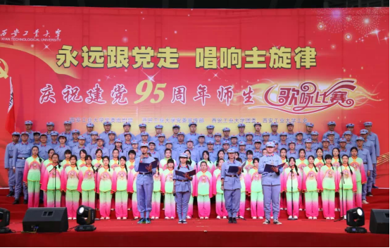 5月27日,由我校党委组织部、党委宣传部、校团委、校工会联合举办的“永远跟党走 唱响主旋律”庆祝建党95周年师生歌咏比在经纬广场隆重举行。本次合唱比赛的主题是庆祝建党95周年和纪念红军长征胜利80周年,每队演唱一首必选曲目和一首自选曲目。本次比赛共有学院、机关等17支代表队参加。