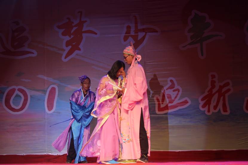 中场抽奖环节,随着大屏幕上名字的滚动,由弥书记、陈副书记和潘副院长团委书记李睿、新生班主任代表万文博老师分别随机抽取了3名幸运本科学生与3个幸运宿舍。接下来由辅导员朱先彬、雷浩然两位老师和学生会、青协的学生干部带来的舞蹈串烧《PPAP》、《穷开心》,将整场晚会推向了高潮。