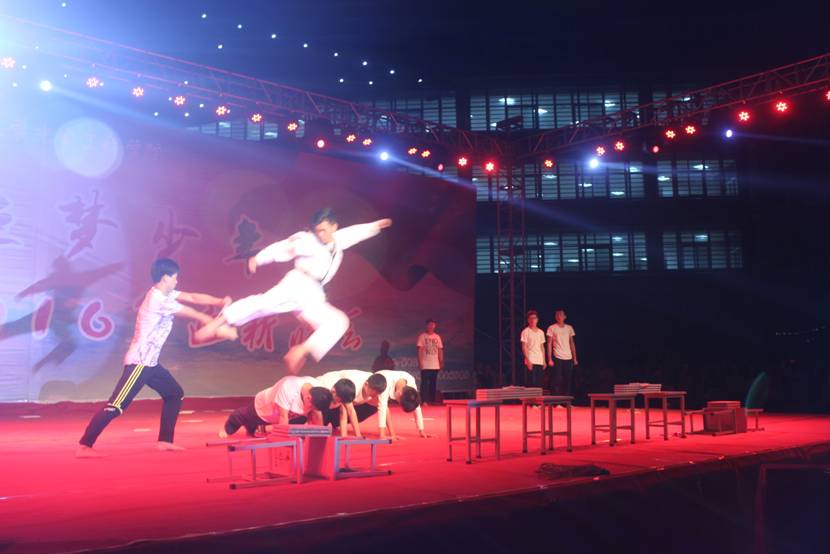 伴随着多彩的灯光和极具感染力的音乐,朗诵《庆祝建党95周年》慷慨激昂、深深地打动了每个人,激发出了每一位观众的爱国之情。歌曲《漂洋过海来看你》唤起了同学们心中阵阵涟漪,让同学们情不自禁的想起心中的那个他(她)。相声《我那搭档》惟妙惟肖的表演,幽默搞笑的动作,让观众笑声不断。舞蹈《crazyshow》曼妙优雅的舞姿,动感十足赢得了观众的喝彩。小品《唐伯虎点秋香》诙谐幽默的语言让全场开怀,夸张的人物形象更是让观众不断哈哈大笑。西洋乐《神话》古典乐器小提琴与萨克斯的二重奏,则带给观众一片静谧的享受,高尚而优雅。跆拳道《破》拳拳生风脚脚生威,震撼全场。女生独唱《月半小夜曲》悦耳动听、惊艳全场。