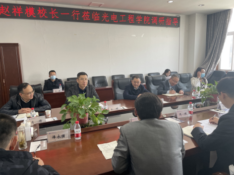 校长充分肯定了学院近年来取得的成绩,对学院领导班子团结、进取的状态给予肯定,并鼓励大家在高起点下再接再厉、再创佳绩。赵校长指出:一是光电学院要不断加强优势资源整合,强化培育,促进大项目、大合作的形成,打造更有特色的科研成果;二是在前沿、交叉学科融合和跨学院联合科技创新方面要积极探索,起到引领作用;三是学院要积极走出去、引进来,与企业广泛开展合作交流,实现科研项目和经费上的不断突破;四是在高层次人才队伍建设方面,既要加大学院宣传力度,引进和培养学科领军人物进一步优化人才梯队建设。