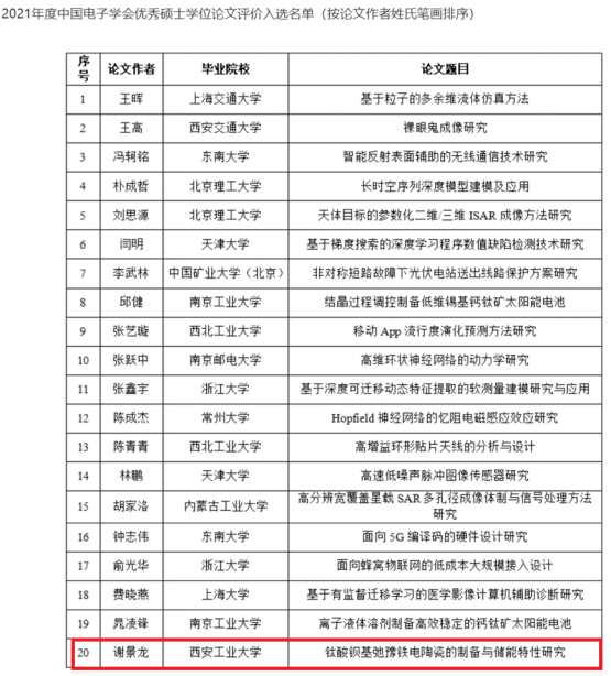 2020届硕士研究生谢景龙(现南京大学博士)的硕士论文《钛酸钡基弛豫铁电陶瓷的制备与储能特性研究》,入选中国电子学会2021年度优秀硕士学位论文,指导教师为戴中华教授。这是调教合集