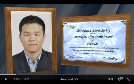 林大斌博士获美国陶瓷学会授予的Ross Coffin Purdy(罗思•科芬•珀迪)奖(//ceramics.org/awards/ross-coffin-purdy-award)。