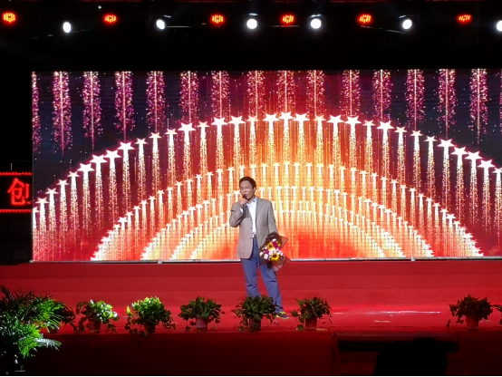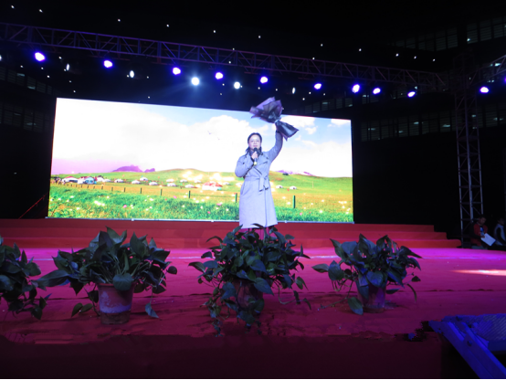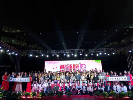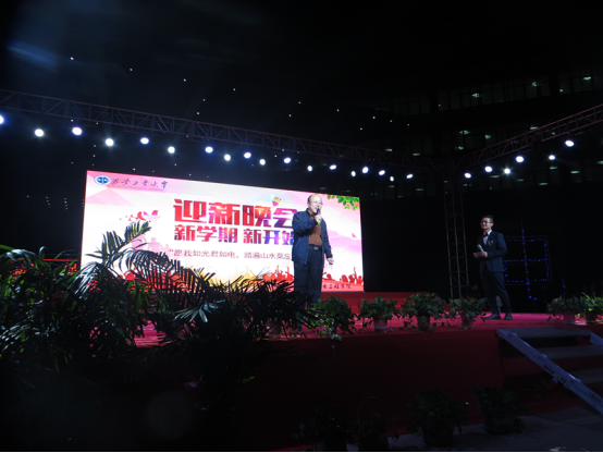 蒋世磊教授一曲《精忠报国》歌声高亢,赢得台下观众掌声阵阵。中场环节,弥谦书记、陈彤副书记分别向2018级新生表示了热烈的欢迎和诚挚的祝福,并抽取《微信上墙活动》的获奖学生。随后,陈副书记现场助兴,为观众们带来歌曲《卓玛》,晚会气氛热烈高涨。