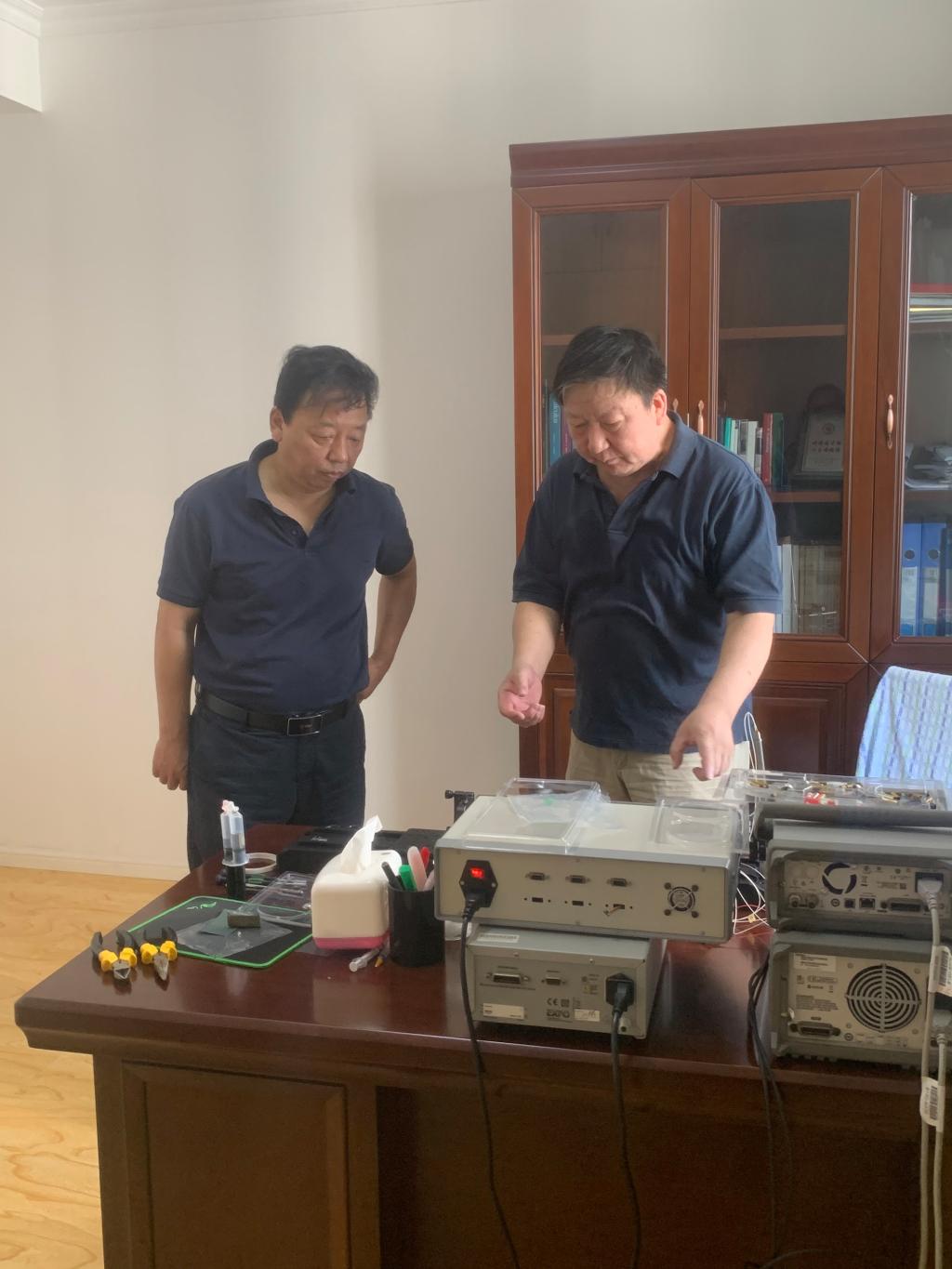 在校聘专家郑刚教授家中,郑老师还向高明院长介绍了近期的科研成果,并就后期的研究成果进行了交流。因疫情封校原因,郑刚教授将部分实验设备搬回家中进行实验测试,高院长对郑刚教授兢兢业业的工作态度表示钦佩,并表示学院会大力支持郑刚老师的科学研究工作,也感谢郑刚教授对学校教学、科研、人才培养作出的贡献。