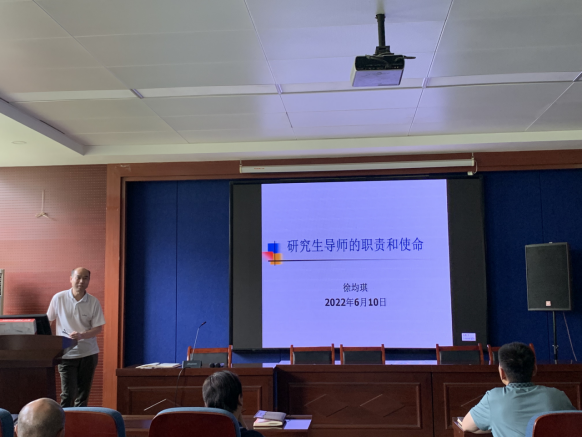 高明教授为大家分享了一些培养研究生的经验和方法,提出研究生导师作为学生们的指导者和引路人,要热爱导师工作,增强使命感、责任感、荣誉感,深度参与到研究生培养的全过程,通过学习不断充实、完善自己,落实好导师在研究生思想政治教育、学术规范训练、创新能力培养等方面的任务。所有研究生导师要有“舍我其谁”的担当,和学院一起担负起人才培养的重任。