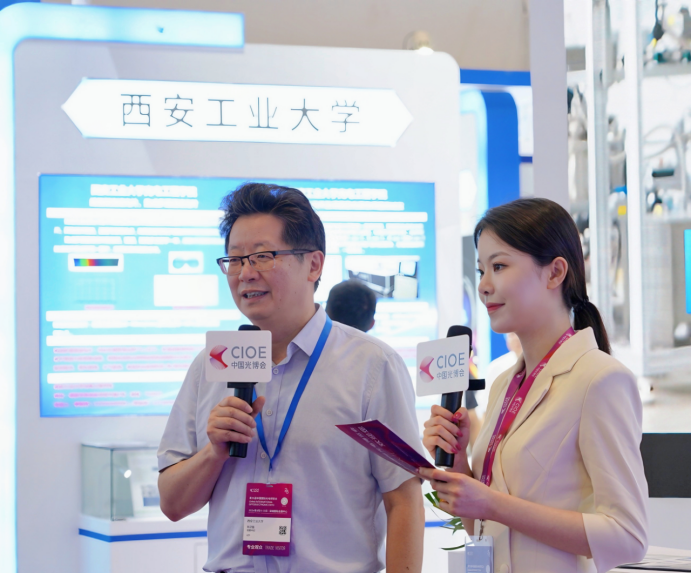 的基本情况、学科特色以及学校参展的光学工程学科相关领域科研成果。他表示学校参加本次展会,既了解了光电行业发展趋势和方向,又促进了产学研深度融合和成果转化,更助力于创新型人才培养。