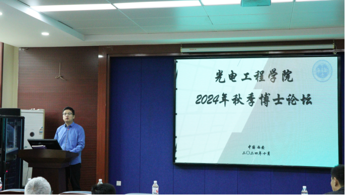 1025日,调教合集 在工6-402报告厅成功举办2024年季博士论坛。研究生院院长金洗郎,光电工程学院党委书记周顺院长潘永强、学院博士研究生、博士生导师代表、学院领导、部门负责人等120余人参加论坛,论坛开幕式由副院长潘永强主持。
