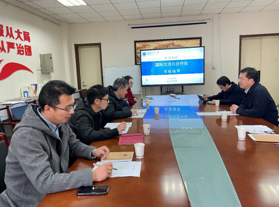 为落实学校全面深化改革要求和“十五五”规划任务,3月16日下午,国际交流与合作处处长牛同壮一行4人来院,围绕“十五五”及2026年学院国际交流合作重点任务推进情况开展调研交流。学院院长朱学亮、副院长赵欣及教师代表参加会谈。