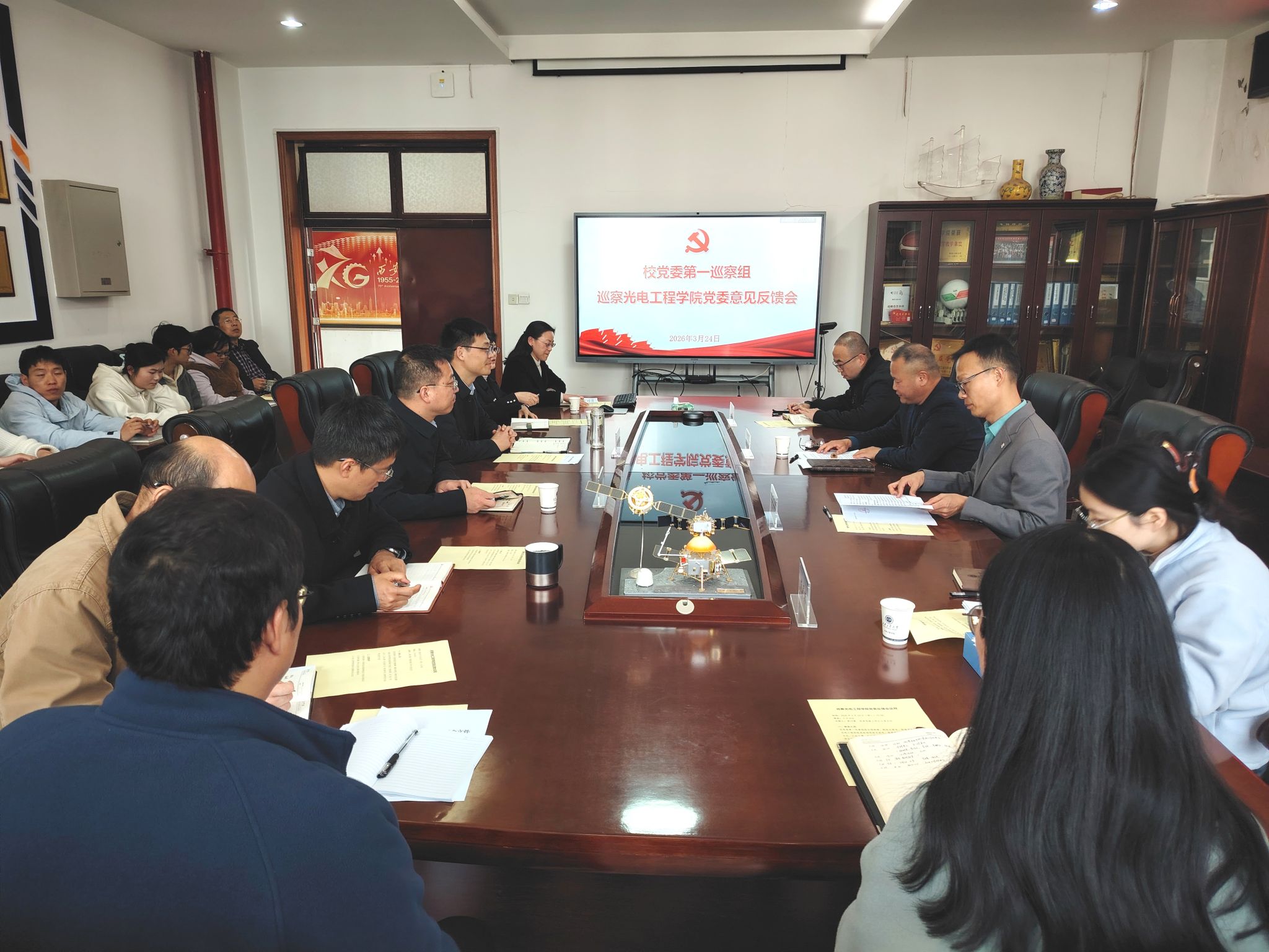 党政领导班子成员、党委委员、系主任、党支部书记及师生代表参加反馈会。