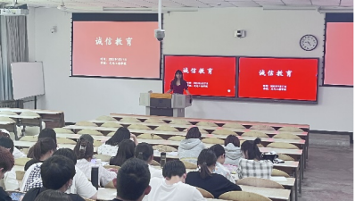 辅导员裴旭乐面向19级学生开展了“诚信教育”主题宣讲活动,活动旨在激励学生立足诚信,大力营造“做诚信人、说诚信话、做诚信事”的教育氛围,并强调了期末临近同学们应诚信应考,杜绝作弊。