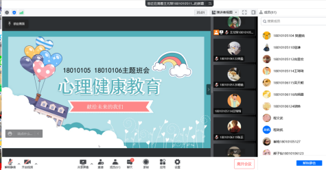 18010105、18010106两个班级同学利用腾讯会议,召开了《直面压力,展望未来》的主题班会。