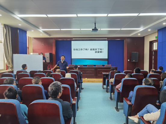 会议由学院党委书记周顺主持。周顺从毕业生充分、高质量就业的重要意义谈起,简要介绍了学院目前就业情况以及当前毕业生就业的严峻形势,提出会议主题:统一认识,全员参与,助力学生充分、高质量就业。