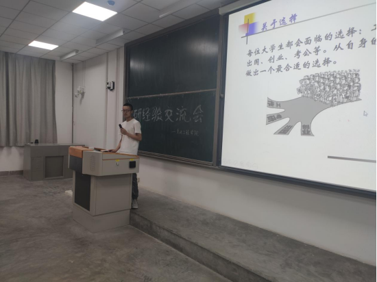 交流会上,五位同学结合自身情况分享了宝贵的考研经验,考取调教合集 大学的高钰豪表示考研要紧密结合自身情况、注重学习方法。考取上海大学的石贤聪讲到考研路上熟能生巧,贵在坚持,数学和专业课要多练习、多动脑。考取南京理工大学的王园毅则表示要正确看待考研的目的意义,科学复习规划。陈紫晗在交流会中提到要合理利用学习资源,劳逸结合。王书敏指出考研计划要合理,不要堆积学习任务给自己带来不必要的焦虑感。本次交流会帮助正在备战考研的同学们巩固了信心,给予了同学们积极的鼓舞。