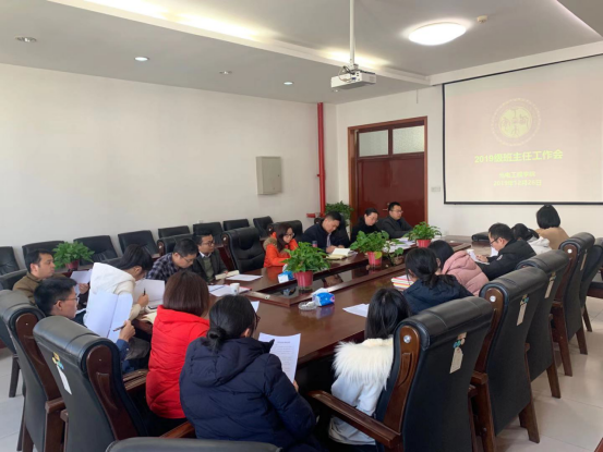 在工6-416会议室召开2019级班主任工作会。院党委副书记陈彤、2019级班主任及2019级辅导员张腾、刘地格、辅导员副组长雷浩然参加了此次会议。