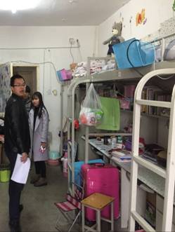 辅导员深入学生宿舍,对学生宿舍安全卫生等进行全面、细致的检查。