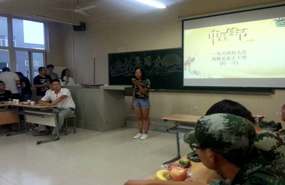 本次茶话会的主题是“迎中秋、送温暖”。活动中,李老师为每一位同学亲手送了月饼,新生也积极地向大家展示了他们的才艺,猜字谜活动将全场的气氛推向了高潮。