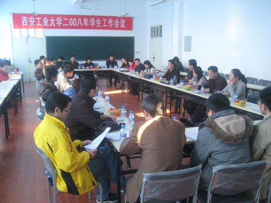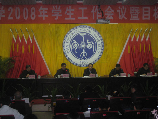 2008年学生工作会议暨目标教育经验交流会隆重召开。校党委书记赛云秀、校长刘江南、党委副书记丁养斌、副校长张君安、刘建勋出席大会。学生工作部等相关行政部门、各院(系)、雁塔校区、继续教育学院、北方信息工程学院领导及全校辅导员和教师代表共400余人参加了大会。