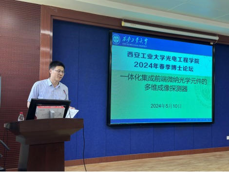 为营造良好学术氛围,激励科研创新活力,拓宽研究生学术视野,进一步促进研究生之间的学术交流与研讨,5月10日,光电工程学院在工6-402报告厅举办了2024年春季博士论坛,学院博士研究生、博士生导师代表、学院领导、部门负责人等120余人参加论坛,论坛开幕式由副院长潘永强教授主持。