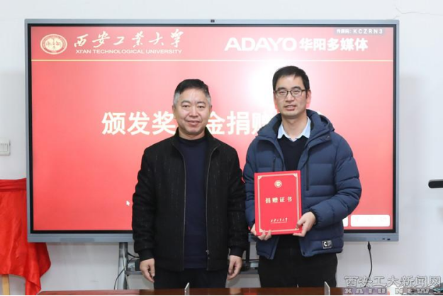 校友总会办公室主任、教育发展基金会理事长王守民与陈晓伟签署了奖学金捐赠协议,并向企业颁发了奖学金捐赠证书。