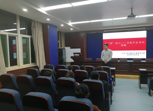 10月23日下午在工6-402,为深入学习贯彻习近平新时代中国特色社会主义思想,深化和推进党支部主题教育,结合近期央视《平“语”近人——习近平总书记用典》节目,支部特开展了学习习近平总书记经典用语学习交流活动。活动由支部副书记罗勇强主持,支部书记李睿参加了交流学习活动。