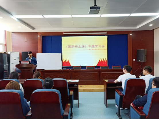 学生第三党支部在工6-402开展了以“国家安全教育”为主题的专题学习研讨会,学习了国家安全法相关内容。本次会议由光电学院学生第三党支部副书记乐林帅主持,支部所有党员同志参加了专题学习会。