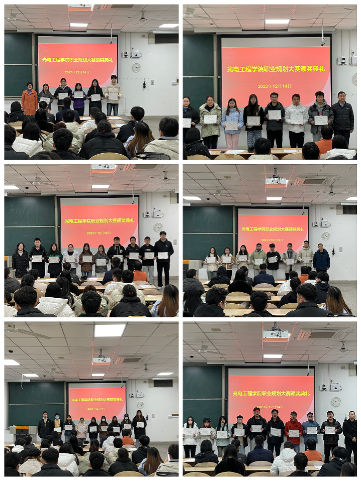 积极响应教育部、省教育厅和学校号召,举办了首届职业规划大赛。12月14日,在教1-104举行颁奖仪式。学院党委书记周顺、党委副书记杨利红、教师代表倪晋平、王伟、王凡、全体辅导员和获奖学生出席。仪式由辅导员李俊洁主持。
