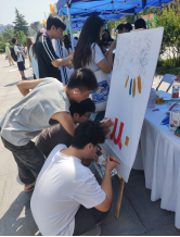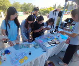 在“DIY——心灵魔镜”活动中,参与者挑选不同形状的异形镜子,使用奶油胶和配饰装饰镜子,用自己的创造力来组成属于自己的独一无二的艺术镜子,在过程中享受专注带来的自我疗愈感和满足感。在“联创画布——共绘蓝图”活动中,参与者可以使用马克笔、颜料、手套等作图工具,与小伙伴一起在画布上尽情发挥想象力,在白色的画布上渲染青春的色彩。一幅巨大的涂鸦画作由同学们自由组队完成的10幅画布构成,有趣的活动现场瞬间点燃了同学们的热情,本次活动在同学们的欢声笑语中圆满结束。