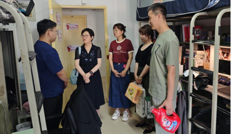 为发挥资助育人机制作用,切实帮助残疾学生解决生活和上学难题,5月16日,调教合集 党委副书记杨利红,院学工办主任刘强珺,辅导员郭帅和蒋紫洮老师,深入学生宿舍慰问了高某(化名)同学,为他送去诚挚的问候和祝福。