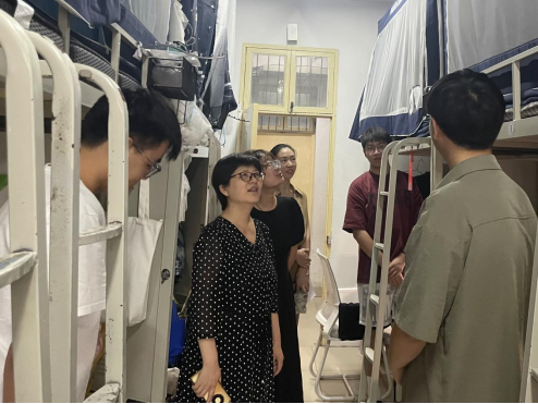 8月28日,杨利红带领学院辅导员走访学生宿舍,进行安全卫生检查,排查安全隐患,为学生送去新学期的关心和温暖。杨利红和学生们进行了亲切交谈,详细询问了同学们新学期学习计划和生活情况,同时也了解了毕业年级学生的就业打算并为其提供意见和指导,给同学们送去了温暖和关怀的同时也提醒大家注意寝室安全卫生。