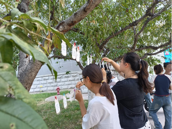从早上9:00直到下午16:00,莘莘学子课间时间陆续来到活动场地。领取我们准备的祝福卡,诚挚地写上满满的祝福。或带走送给最喜爱的老师,或悬挂在心愿树上。每一张贺卡、每一句话,都充满着对老师们最真挚的感谢。在这个特殊的日子里,同学们用真挚的语言讲述着老师们的辛勤付出和对自己的关爱,用自己的方式向老师传递心中的敬意与感谢。